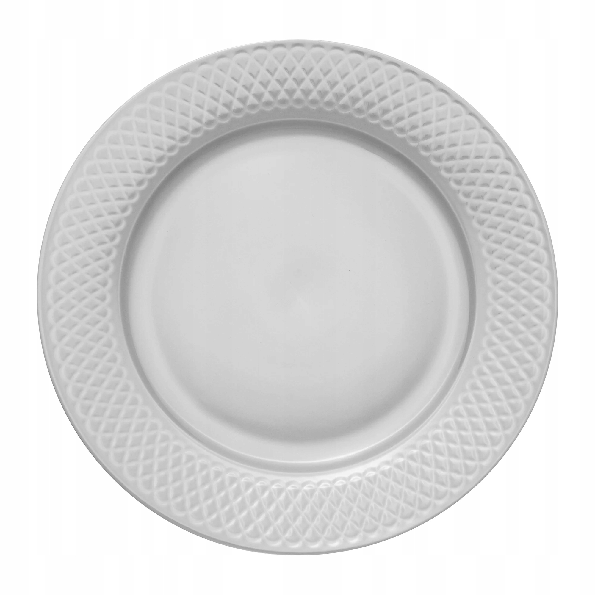 - Geometryczny wzór: Delikatne zdobienie na rancie podkreśla nowoczesny styl talerza.