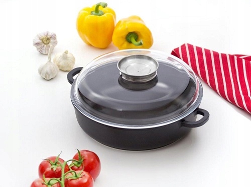 Naczynie wraz z pokrywa przystosowane są do używania w piekarniku do temp. 180C.