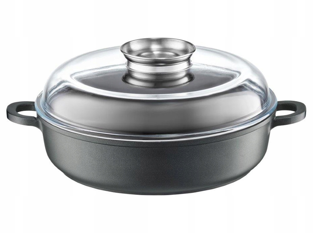 Brytfanna owalna posiada pokrywę ze specjalnym dozownikiem do oliwy/wody czyli tak zwany Aroma Knob. Umożliwia on uzupełnianie płynów podczas pieczenia bez podnoszenia pokrywy. To nowatorskie rozwiązanie pozwala zmniejszyć ubytek soli i minerałów naturalnych w przygotowanych potrawach.