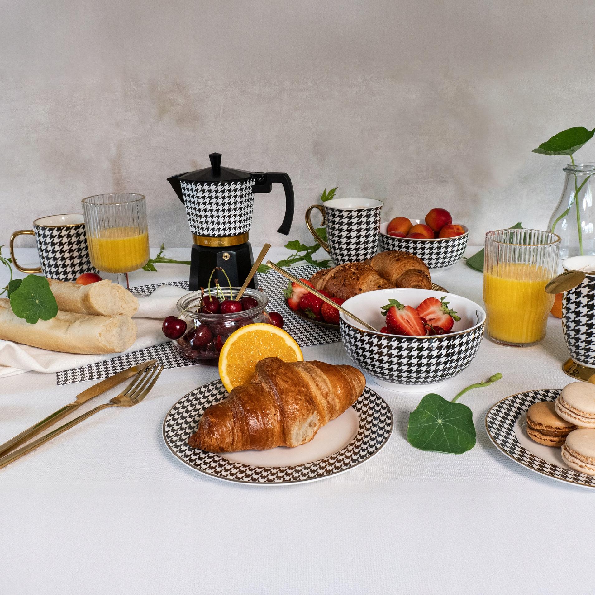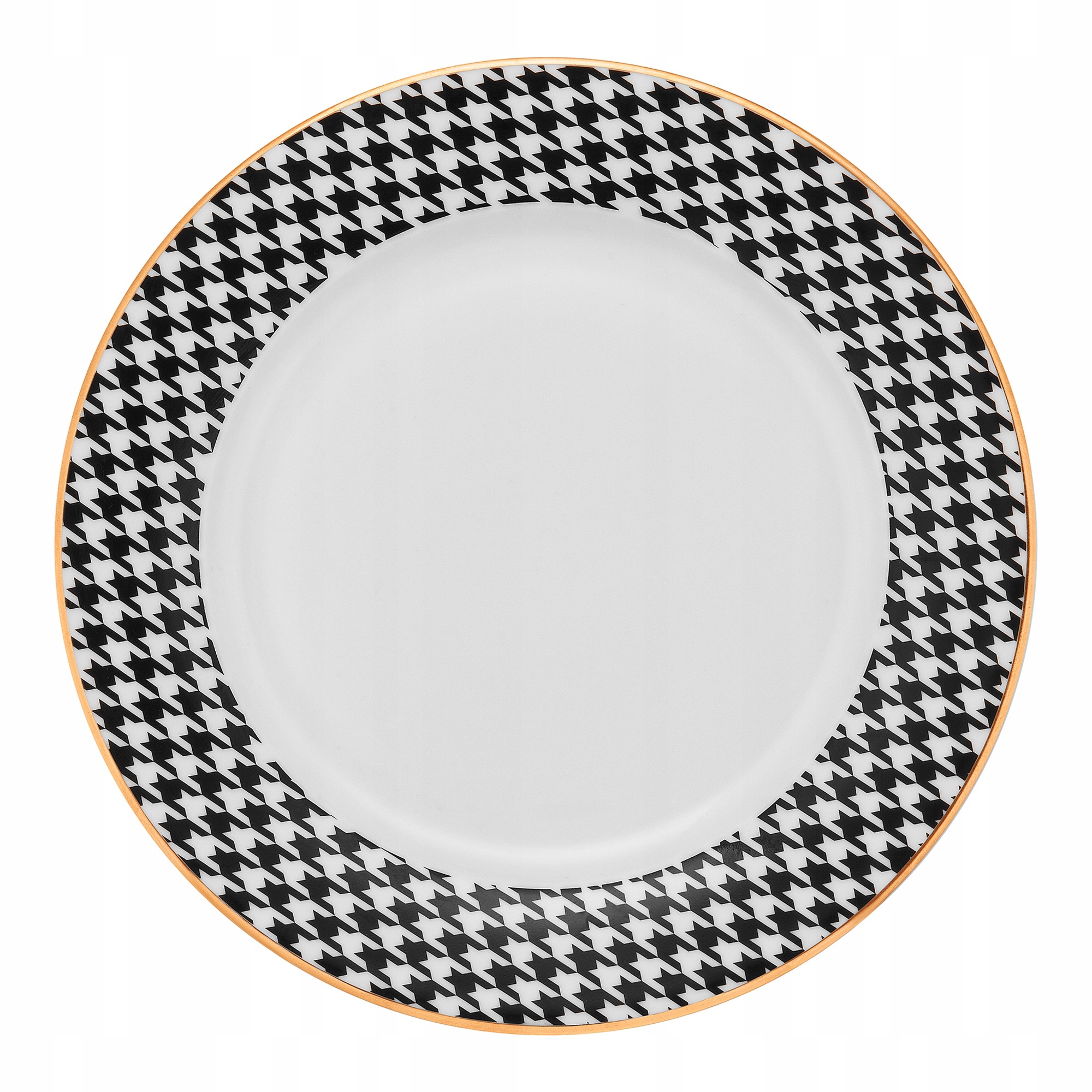 Szukasz talerza, który będzie nie tylko praktyczny, ale i efektowny? Model Coco 19 cm sprawdzi się doskonale – wzór pepitki i złote wykończenie sprawiają, że każde podanie nabiera stylu.
