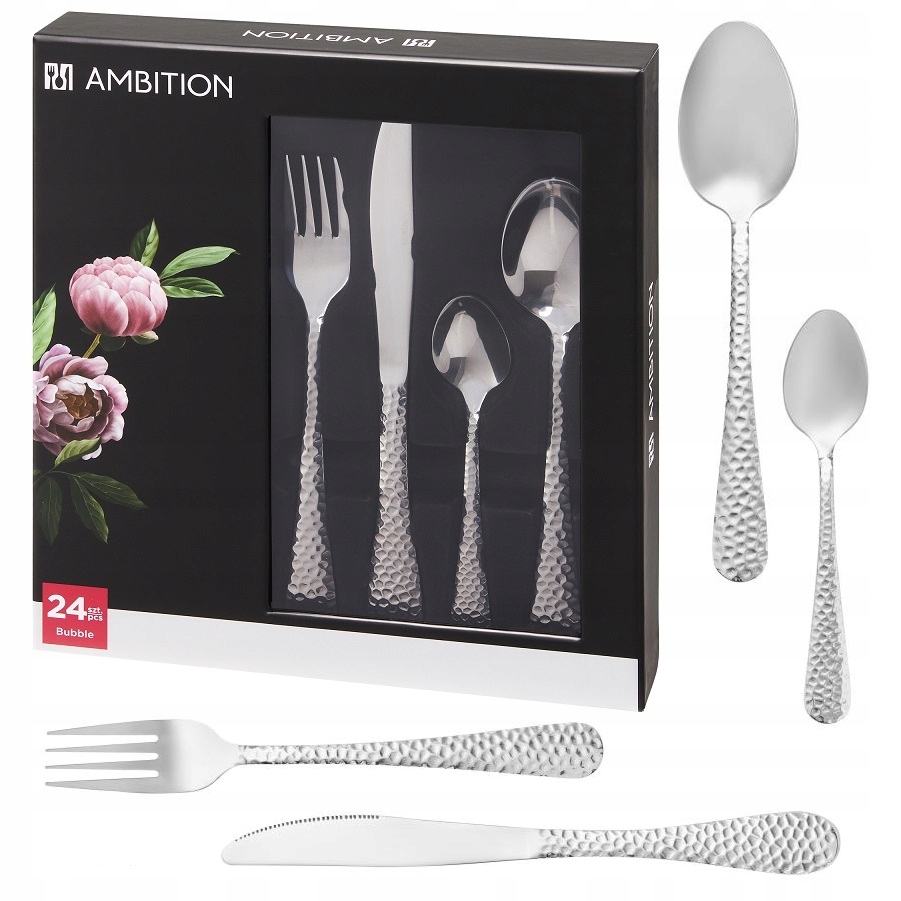 AMBITION 24 x SZTUĆCE NIERDZEWNE BUBBLE ZDOBIONE OBIADOWE ZESTAW NA 6 OSÓB