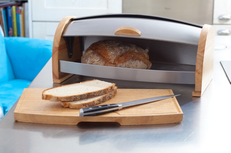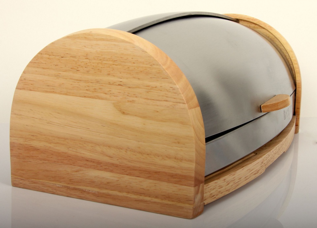 - Praktyczna wysuwana deska do krojenia oraz boki chlebaka wykonane z drewna kauczukowego w kolorze naturalnym.