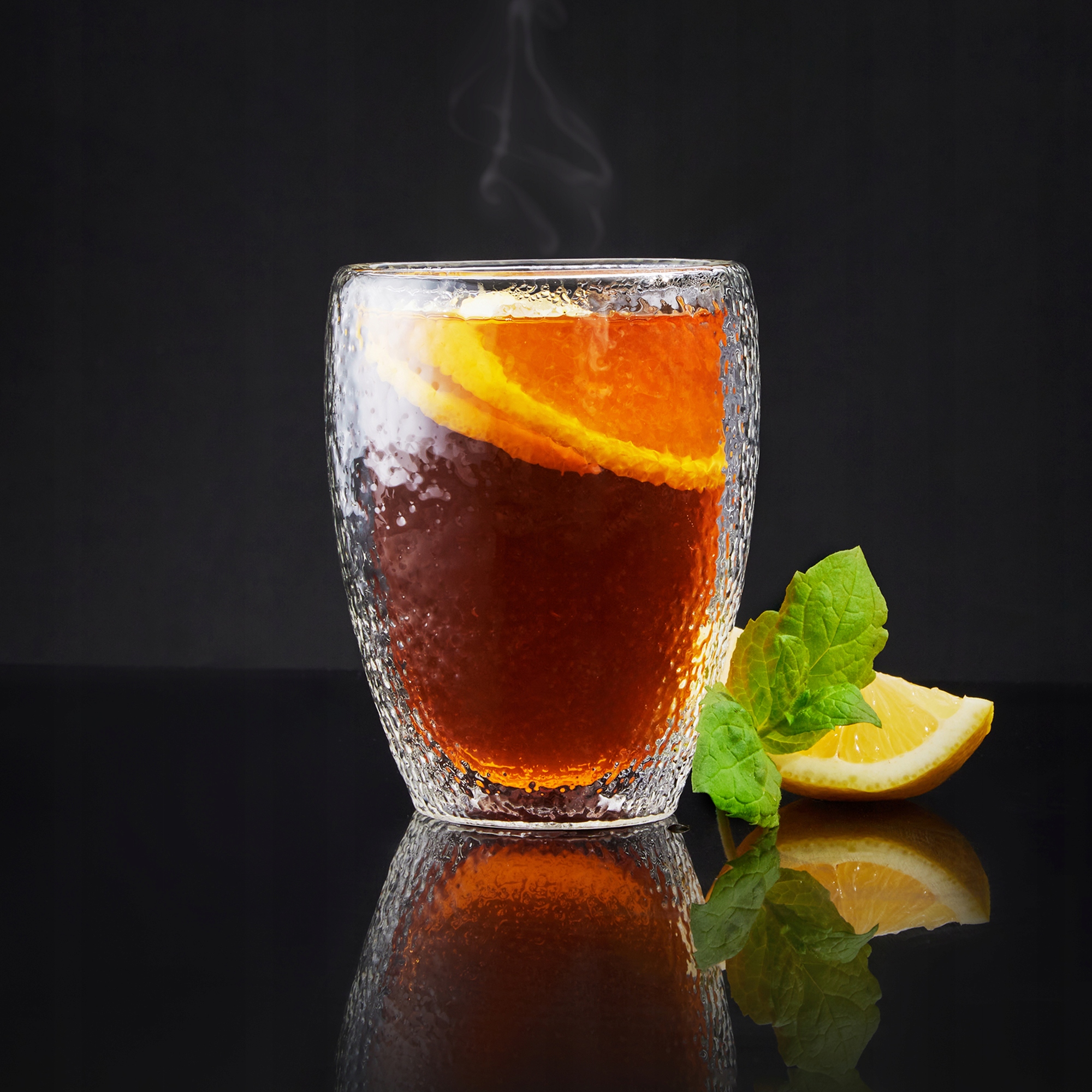 • Podwójne ścianki – napój dłużej utrzymuje temperaturę, a szklanka nie parzy w dłonie.