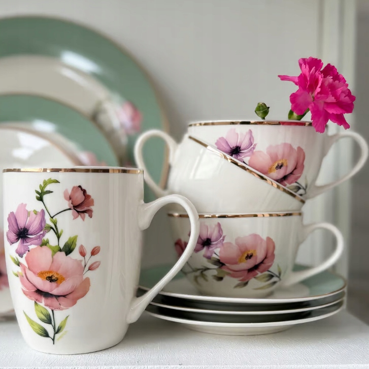 - Wysokiej jakości porcelana: cienka, lekka, ale odporna na codzienne użytkowanie.