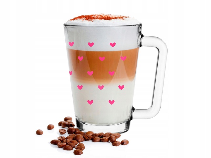 KUBEK LAURA O POJEMNOŚCI 250ml Z NADRUKIEM RÓŻOWYCH SERDUSZEK
