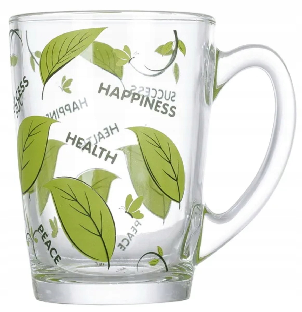 LUMINARC Kubek BLISS hartowane szkło LIŚCIE ZIELONY 320ml SZCZĘŚCIE