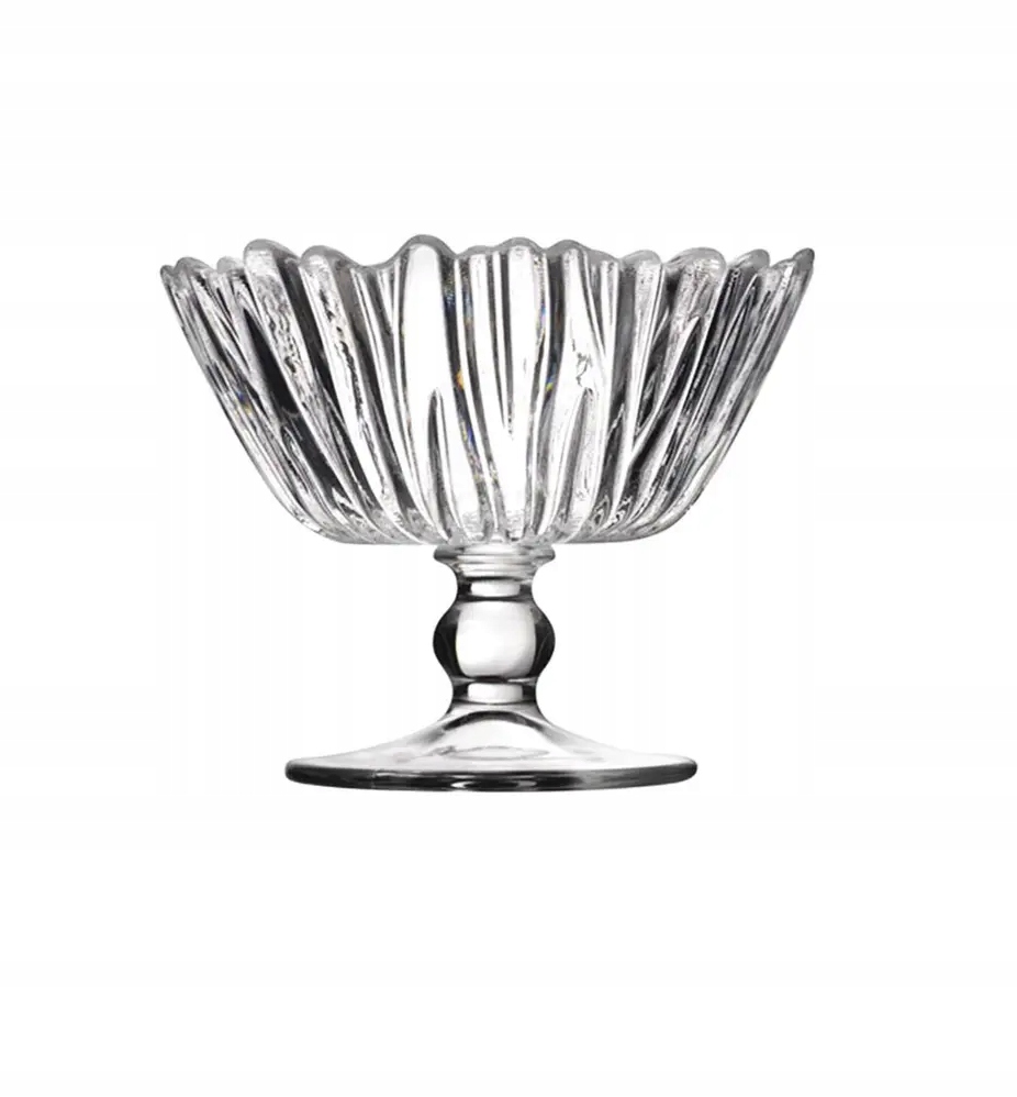Salaterka na nodze, bomboniera z serii naczyń Aurora marki Pasabahce. Posiada kształt o nieregularnym, kryształowym wykończeniu. Wykonana z przezroczystego szkła wysokiej jakości. Niezbędna w każdym domu podczas przyjmowania gości. Świetnie sprawdzi się do serwowania przekąsek, słodkości takich jak czekoladki, owoce, cukierki.