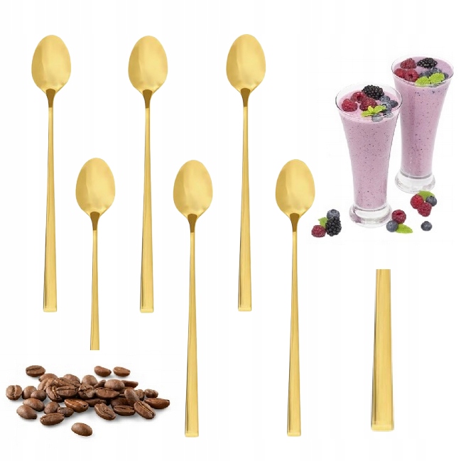 Komplet łyżeczek deserowych Como w kolorze złotym to elegancki zestaw, który wyróżnia się nowoczesnym, połyskliwym wykończeniem. Zestaw zawiera 6 łyżeczek, wykonanych z trwałej stali nierdzewnej, odpornej na korozję. Ich stylowy, minimalistyczny design sprawia, że doskonale nadają się zarówno do deserów, jak i serwowania kawy latte. Dzięki praktycznej konstrukcji są idealne do codziennego użytku, jak i na specjalne okazje.