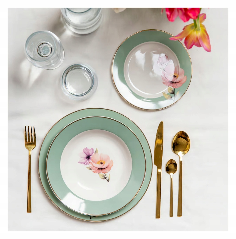 Talerz głęboki Flores 23 cm to połączenie delikatnej porcelany, romantycznego wzornictwa i wyjątkowej funkcjonalności. Jego pastelowe barwy, subtelny kwiatowy wzór oraz eleganckie złote wykończenie sprawiają, że każdy posiłek nabiera wyjątkowego charakteru. Dzięki swojej wszechstronności doskonale sprawdzi się do podawania zup, kremów, gulaszy czy świeżych sałatek.