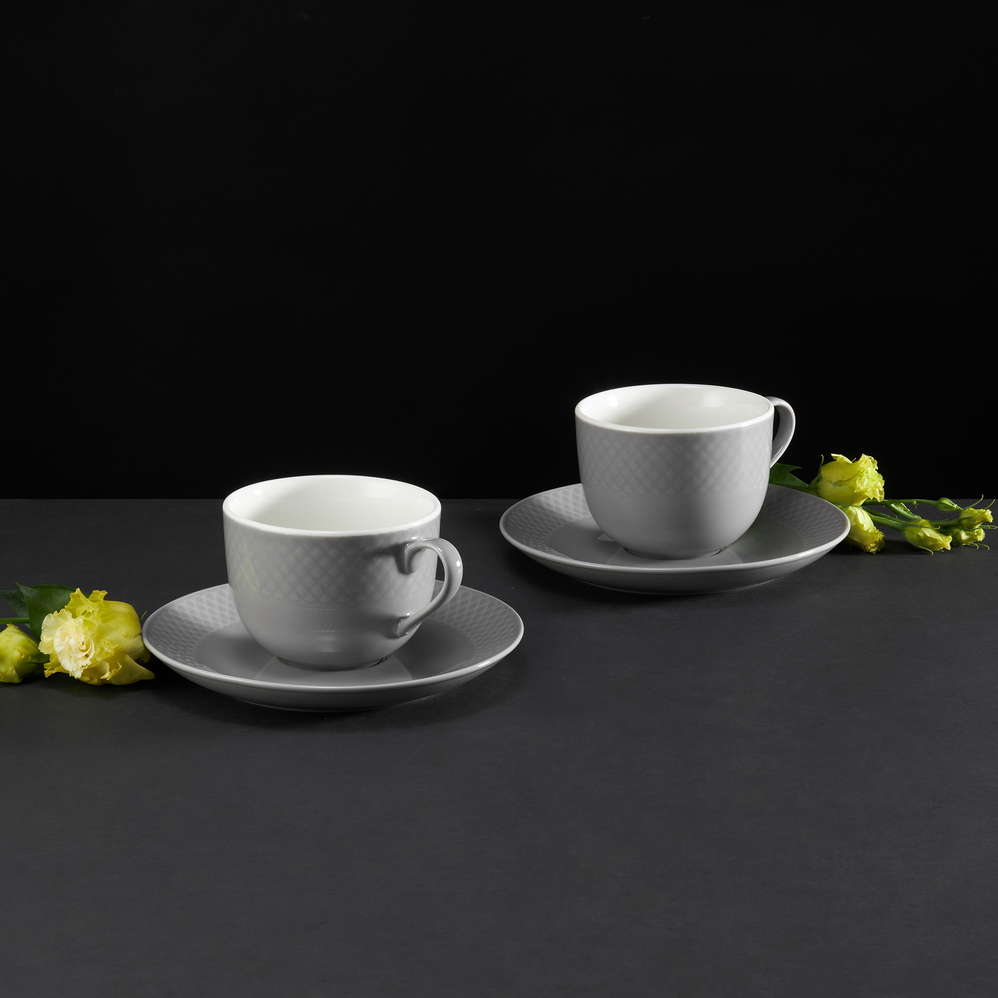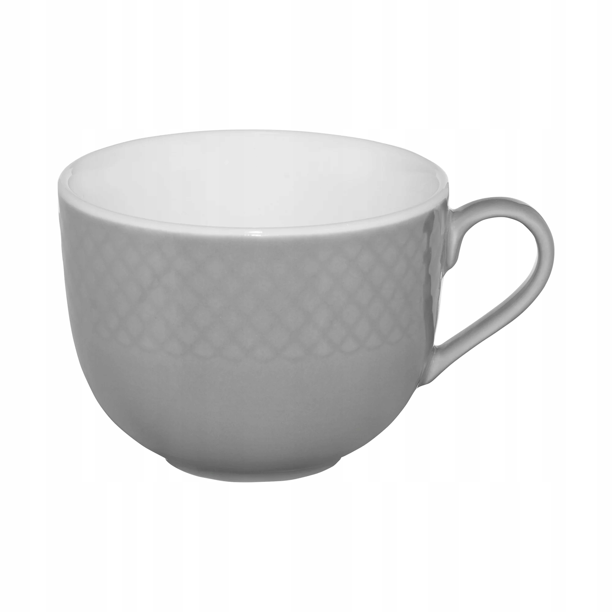 • Stylowy design: Delikatny szary odcień i geometryczne tłoczenie nadają filiżance nowoczesnego charakteru.