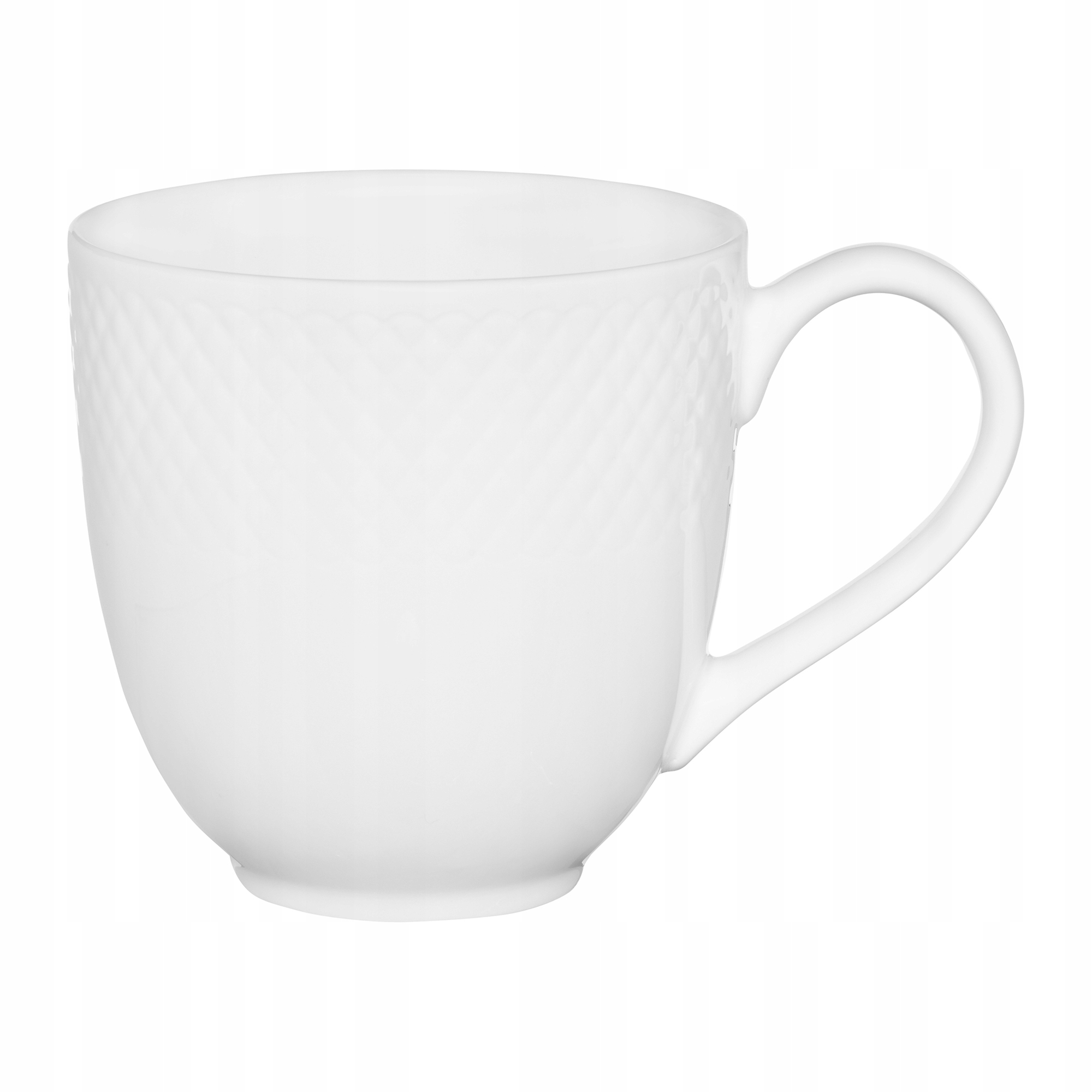 - Klasyczny wygląd: Biały kubek z subtelnym geometrycznym tłoczeniem pasuje do każdej aranżacji stołowej.