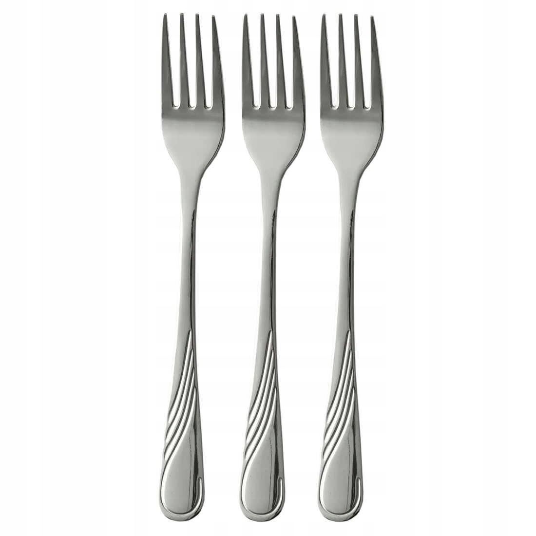 Komplet 3 sztuk widelców stołowych Napoli marki Ambition. Sztućce z serii Napoli posiadają klasyczny kształt, zdobione są delikatnym motywem fali. Wykonane z wysokiej jakości stali nierdzewnej. Rodzaj stali sprawia, iż sztućce są twardsze, bardziej odporne na korozję i pełniejsze blasku. Dzięki wysokiej jakości i subtelnemu wykonaniu sztućce Napoli są najchętniej wybieraną linią przez klientów.