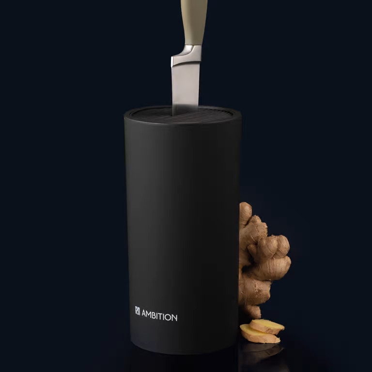Idealny do wszystkich rodzajów i długości noży, wystarczy wsunąć nóż w dowolne miejsce w bloku.