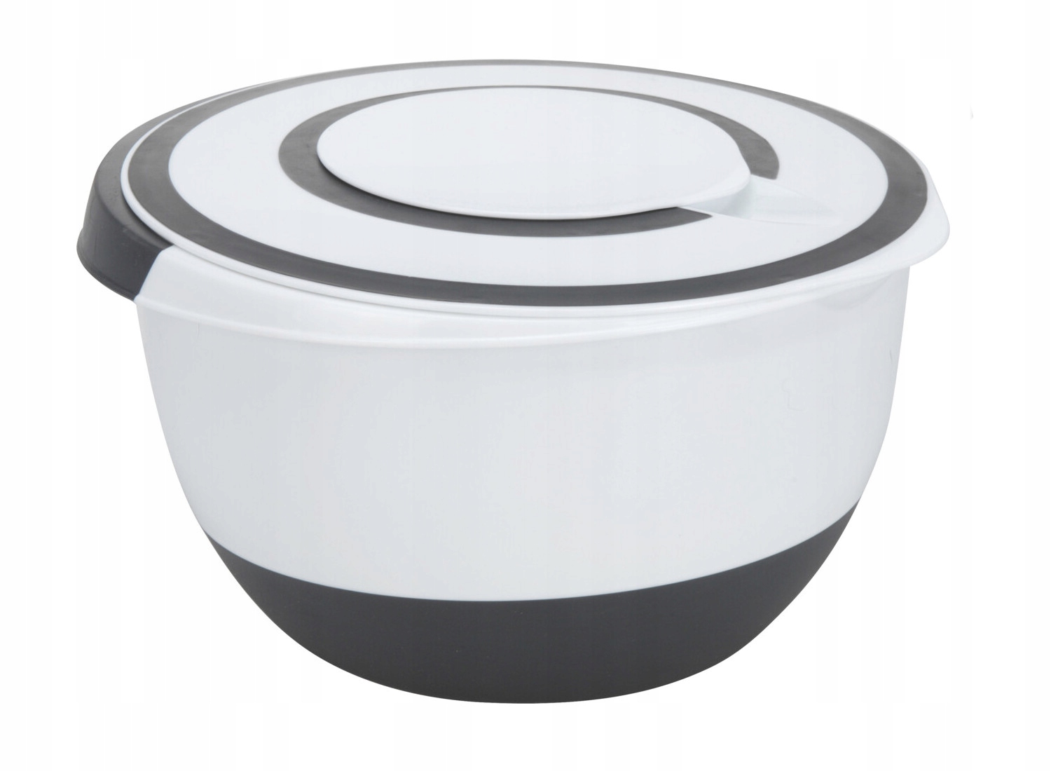 Miska do miskowania z podwójną zamykaną pokrywą, która ułatwia mieszanie oraz zabezpiecza przed rozchlapywaniem zawartości podczas miksowania co chroni przed koniecznością czyszczenia całej kuchni.