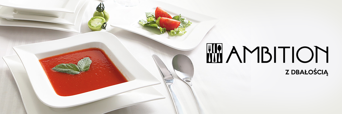 Ambition to zarówno klasyka jak i innowacja. Propozycja dla wielbicieli niebanalnego wzornictwa. To wzory z jednej strony ambitne, z drugiej bezpieczne, bo odnajdujące się w każdym wnętrzu. Każdy znajdzie tu coś dla siebie. Wyraźnie widoczna dynamika i ambicja to odzwierciedlenie pasji do gotowania, którą twórcy marki chcą zarażać swoich klientów.