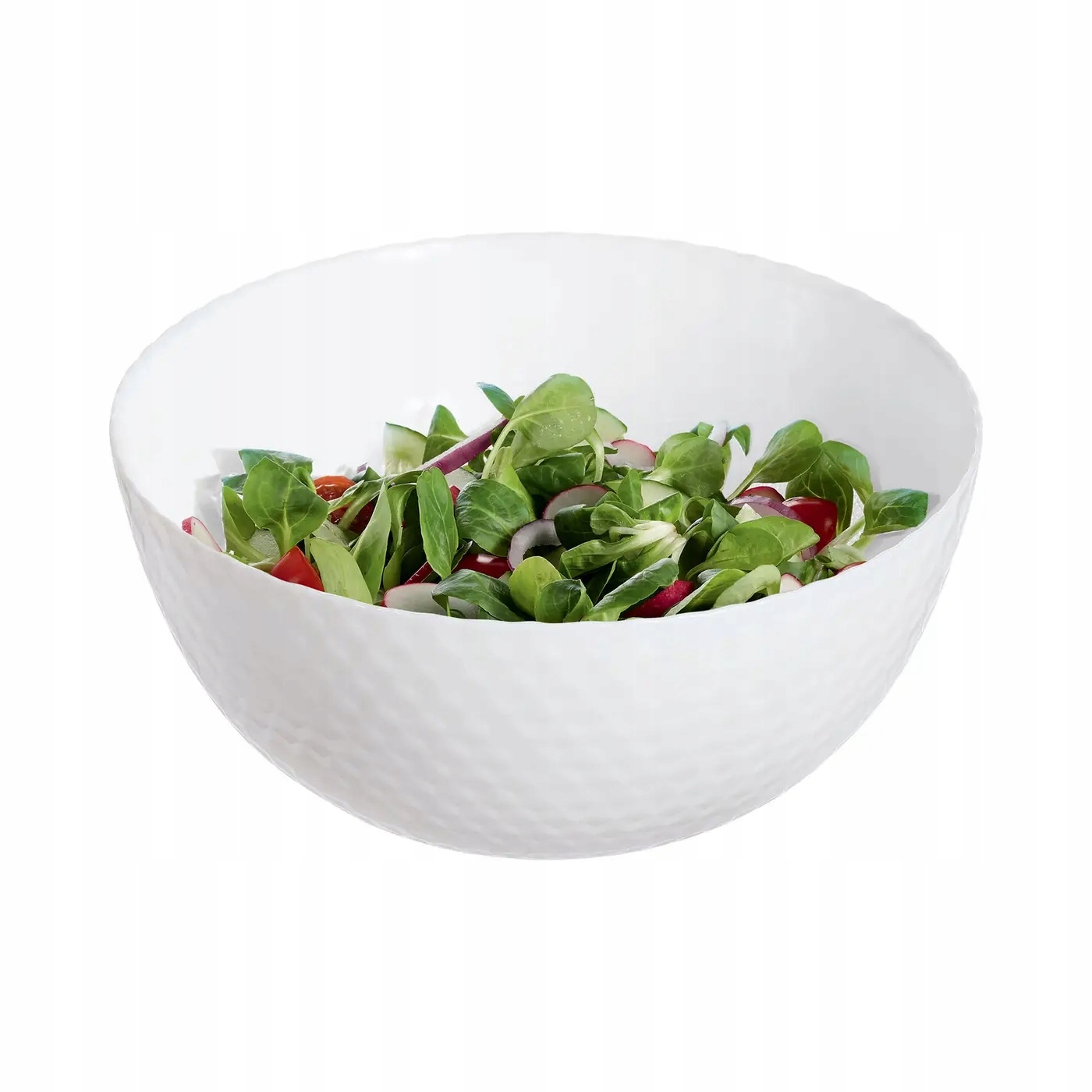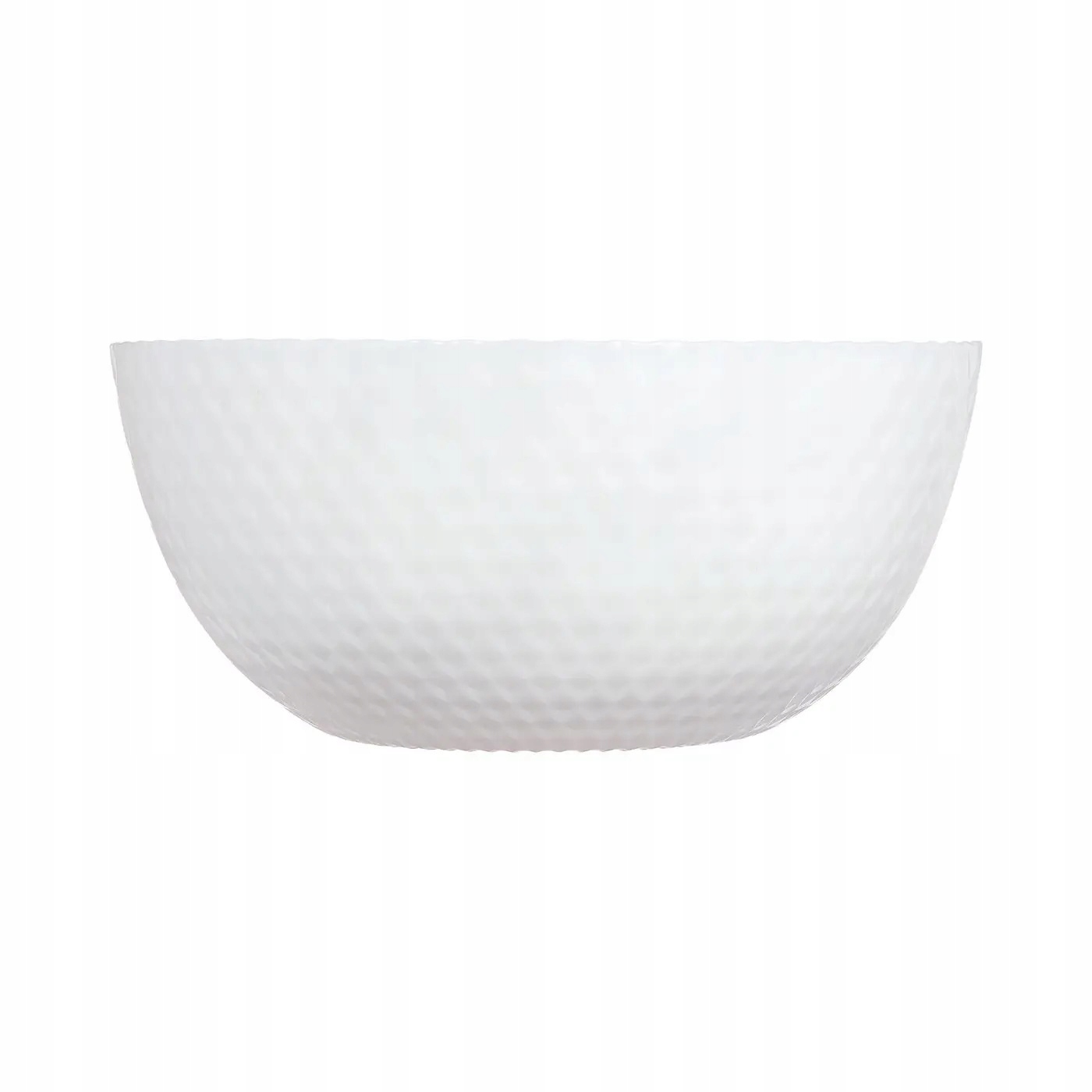 Salaterka szklana 24 cm z kolekcji Pampille w kolorze białym zachwyca swoim geometrycznym wzorem. Odporne szkło hartowane jest w 100% bezpiecznym dla zdrowia materiałem. Nie zawiera kadmu oraz ołowiu. Salaterkę można myć w zmywarce oraz używać w kuchenkach mikrofalowych.