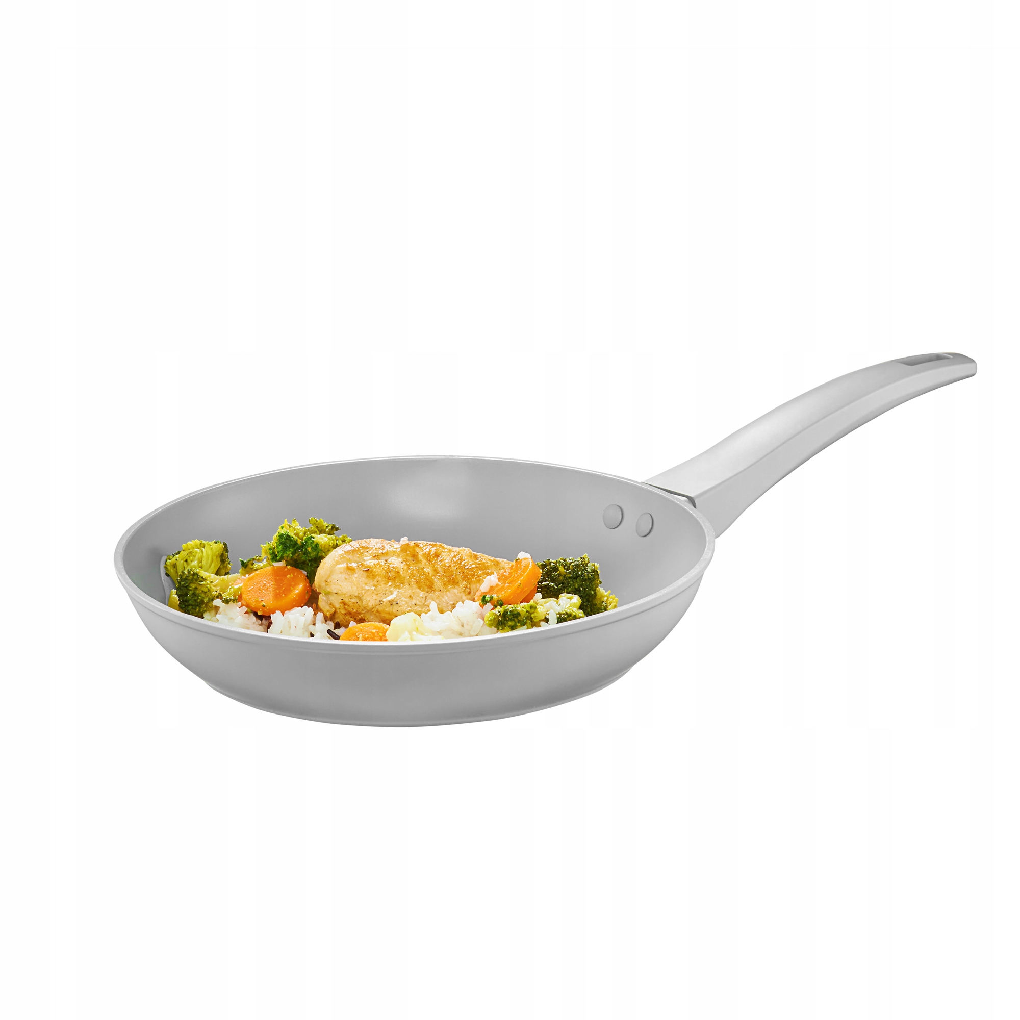 Patelnia wykonana z odkuwanego aluminium zapewnia szybkie i równomierne nagrzewanie. Posiada powłokę nieprzywierającą Qualum Basic, ułatwiającą smażenie i czyszczenie. Kompatybilna ze wszystkimi typami kuchenek, w tym indukcyjnymi. Ergonomiczna rączka Soft Touch zapewnia komfortowy i bezpieczny chwyt. Jasnoszary, uniwersalny design pasuje do każdej kuchni. Średnica 24 cm sprawia, że patelnia jest idealna do codziennego gotowania mniejszych porcji.