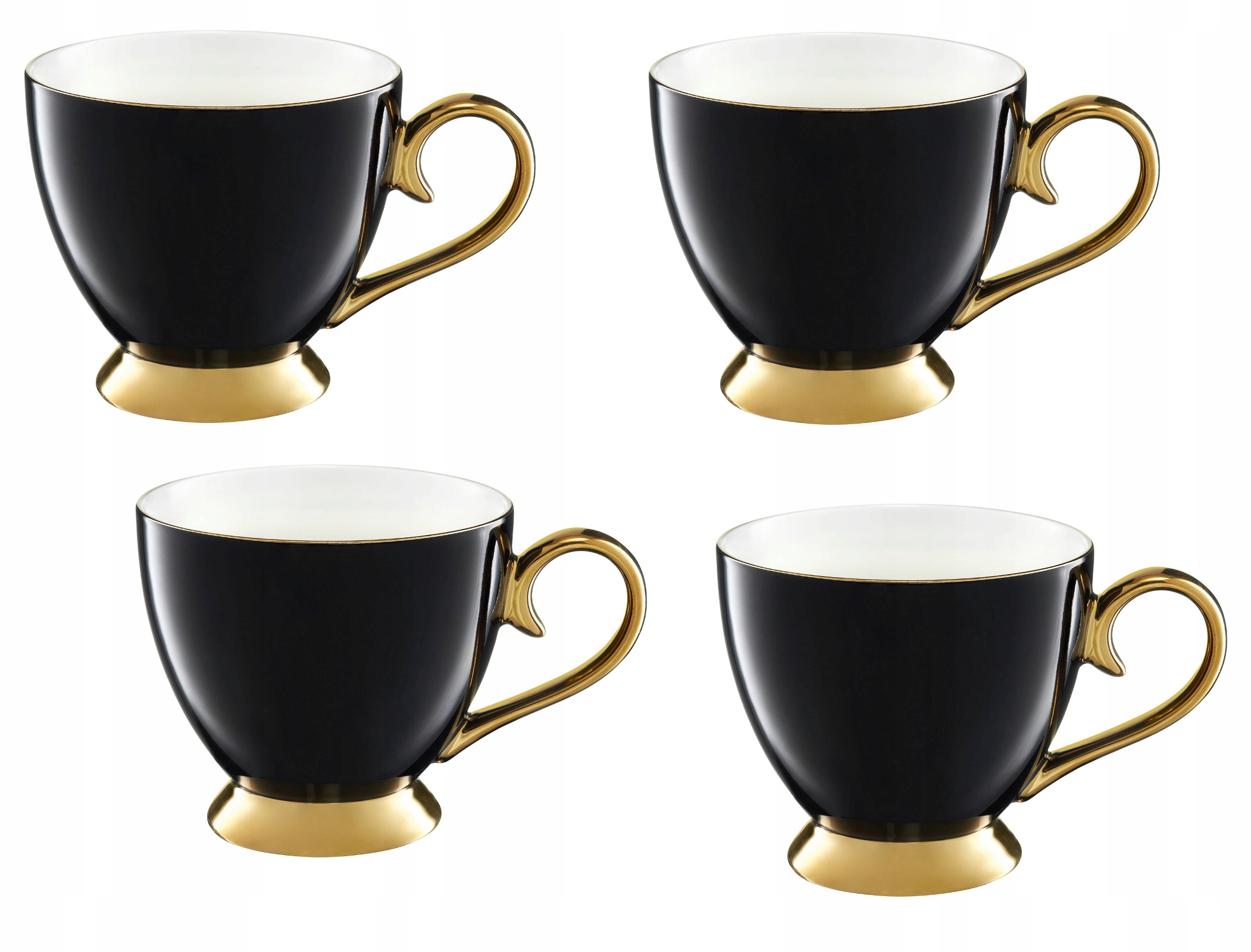 Niezwykłe filiżanki o pojemności 400 ml, doskonałe do serwowania herbaty lub kawy. Filiżanki na stopce ze złoceniem na rancie i uszku, prezentują się bardzo luksusowo. Kubek o tak dużej pojemności, zapewni długie chwile relaksu.