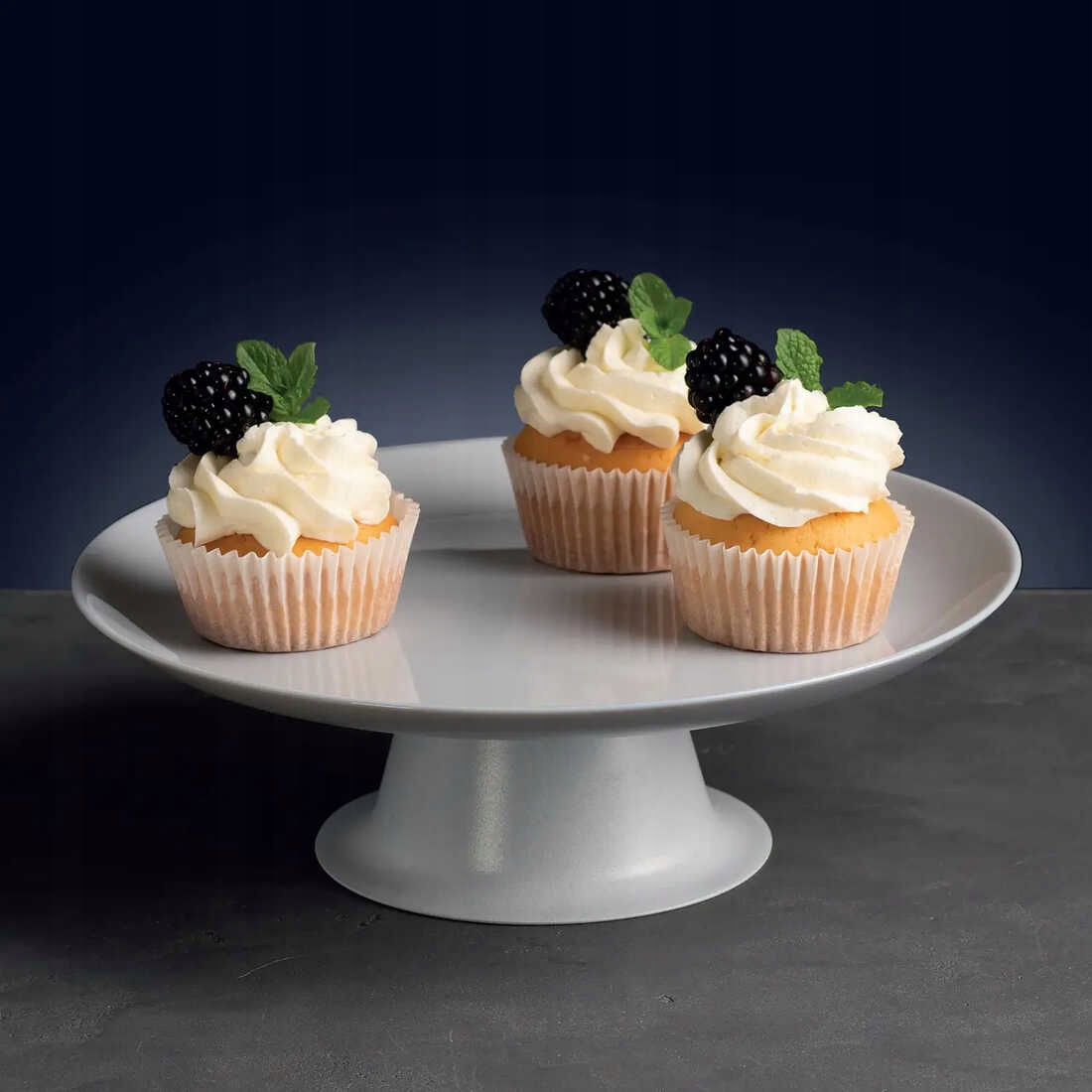 Patera na nodze Lily marki Ambition. Wykonana została z wytrzymałego szkła hartowanego w kolorze szarym. Świetna do serwowania owoców, babeczek, tortów i innych wypieków. Dzięki prostemu wzornictwu, genialnie wpasowuje się w styl wielu zastaw stołowych wykonanych ze szkła. Do pater pasują talerze z kolekcji Diwali marki Luminarc.