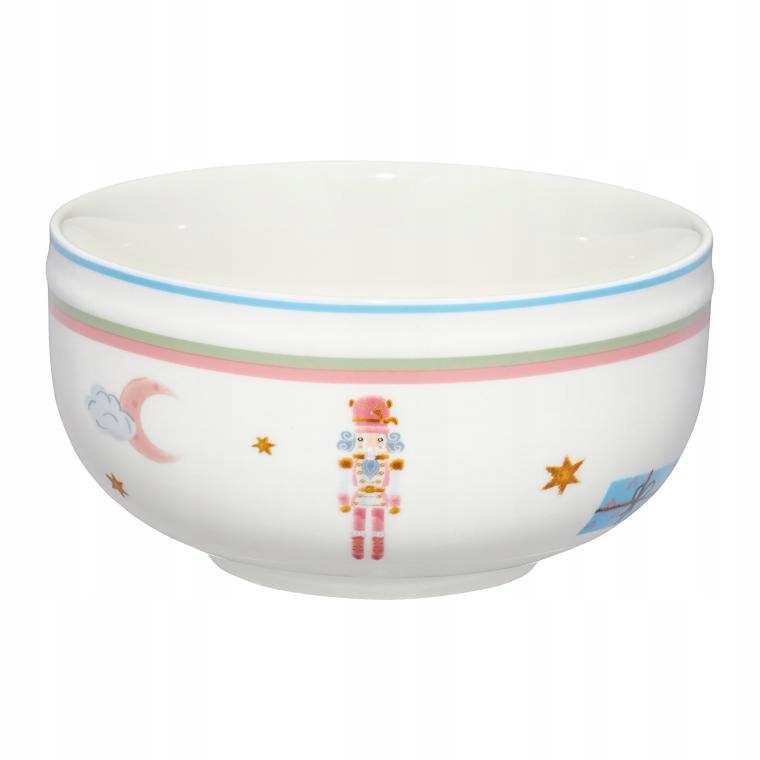 Salaterka z kolekcji Ballet to doskonały sposób na wprowadzenie magicznego, świątecznego klimatu na Twój stół. Inspirowana baletem „Dziadek do Orzechów” Piotra Czajkowskiego, przenosi w świat zimowych baśni. Motyw Dziadka do Orzechów, otoczony gwiazdami, pastelowym księżycem i subtelnymi dekoracjami, tworzy wyjątkową kompozycję, która doda uroku każdemu posiłkowi. Pastelowe barwy – róż, mięta, jasny błękit i szarość – idealnie wpisują się w nowoczesny trend Winter Pastel, przynosząc lekkość i przytulność na świąteczne stoły. Salaterka jest funkcjonalna, bezpieczna do mycia w zmywarce i używania w mikrofalówce, co czyni ją zarówno estetycznym, jak i praktycznym elementem Twojej kuchni.