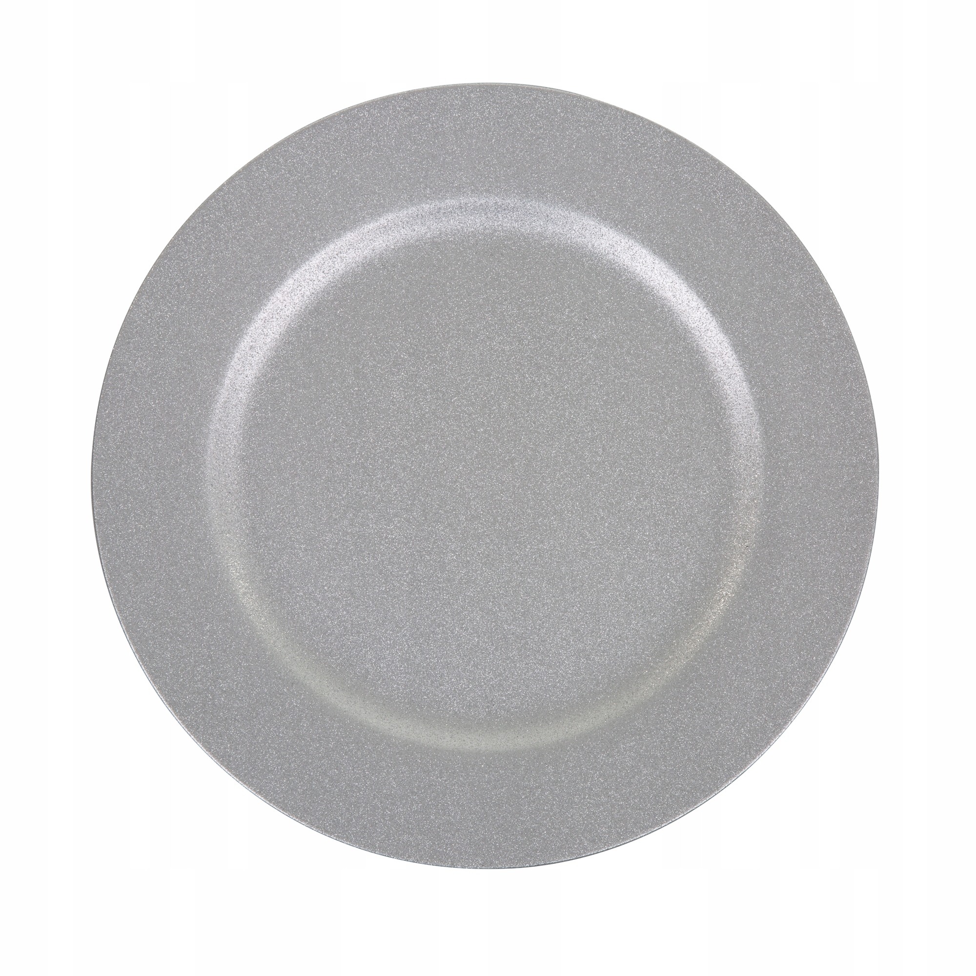 1. schludnie wykonany srebrny podtalerz z brokatem, idealny do dekoracji stołu na różne okazje